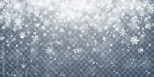 Obraz premium Christmas snow. Falling snowflakes on dark background. Snowfall. Vector illustration