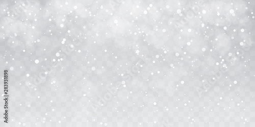 © Oleh, Fototapeta premium Christmas snow. Heavy snowfall. Falling snowflakes on transparent background. White snowflakes flying in the air. Vector illustration