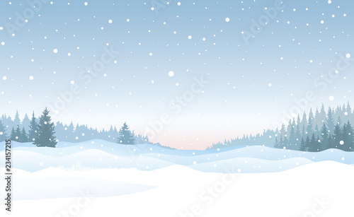 © Terriana, Naklejka premium Christmas snowfall background. Snow winter landscape. Merry Christmas skyline.