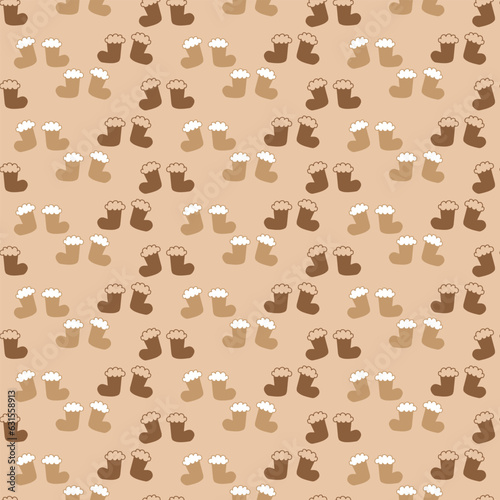 Fototapeta premium christmas socks with pastel brown background seamless repeat pattern