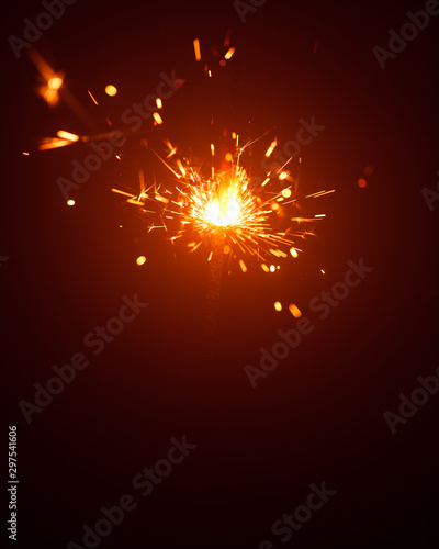 © nikkytok, Obraz premium Christmas sparkler in haze with red light