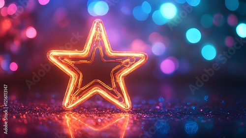 © Faizan, Fototapeta premium Christmas star glowing softly with dynamic neon isolated on a colorful background