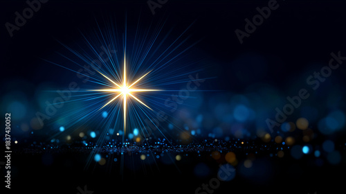© Kateryna, Fototapeta premium Christmas star of nativity of Bethlehem background birth of Jesus Christ scene beautiful dark blue starry sky bright star display religious holiday celebration