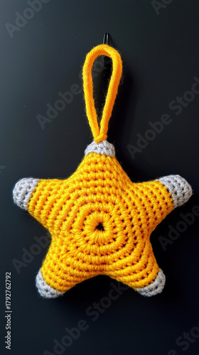 Fototapeta premium Christmas star ornament handmade with yellow and gray yarn adds festive charm...