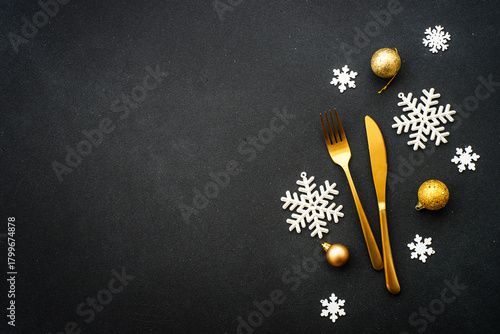 Obraz premium Christmas table setting with plate, cutlery and christmas decorations on...