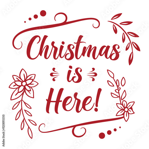 Fototapeta premium Christmas text "Christmas is here" vector illustration Adobe Illustrator Artwork