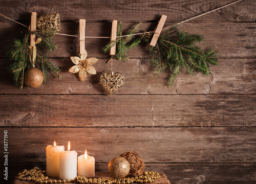 © Maya Kruchancova, Obraz premium Christmas theme on wooden planks