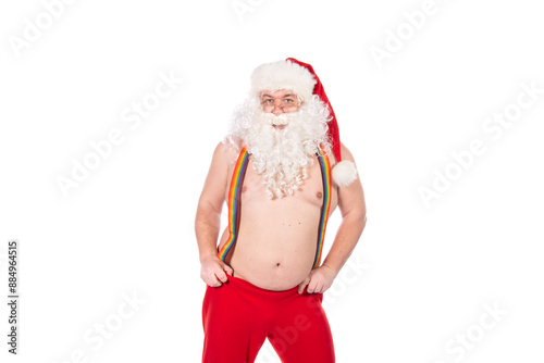 © vladorlov, Fototapeta premium Christmas themed party. Funny Santa Claus posing on a white background.
