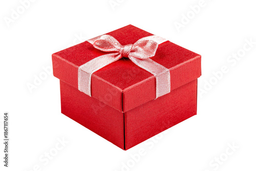 Obraz premium Christmas themed red gift box isolated on transparent background