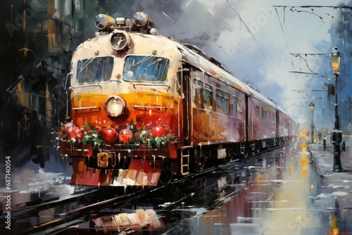 © Sidewaypics, Obraz premium Christmas Trains - Generative AI
