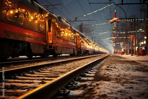 © Sidewaypics, Obraz premium Christmas Trains - Generative AI