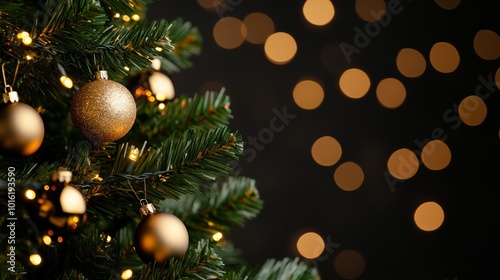 Obraz premium Christmas tree adorned with twinkling lights and shimmering baubles, softly...