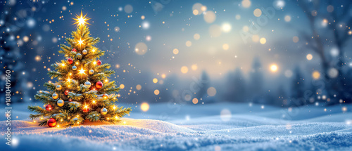 © Kuroneko Mac, Naklejka premium Christmas Tree at Dawn with Copy Space