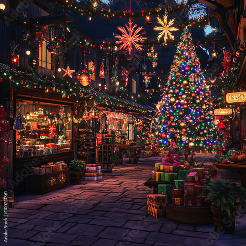 © Diana, Obraz premium christmas tree at night