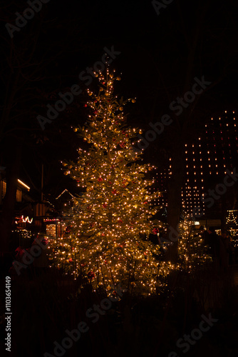 Naklejka premium Christmas tree, at night, in Tivoli Gardens, Denmark