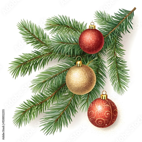 © Farah, Fototapeta premium christmas tree branch with red ball