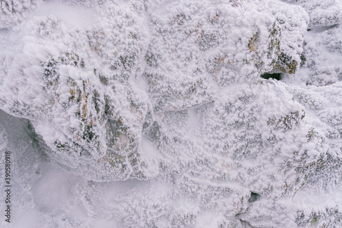 Fototapeta premium Christmas tree branches covered with snow and ice