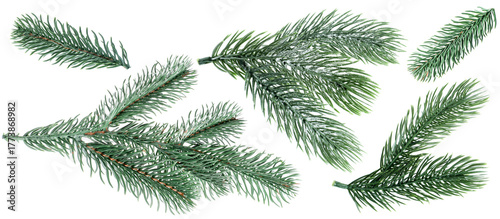 © New Africa, Obraz premium Christmas tree branches isolated on white, set