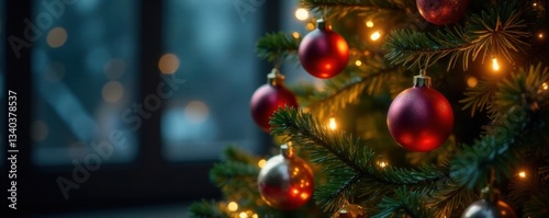 © Prayoon, Fototapeta premium Christmas tree decorated with lights and ornaments, colorful, garlands