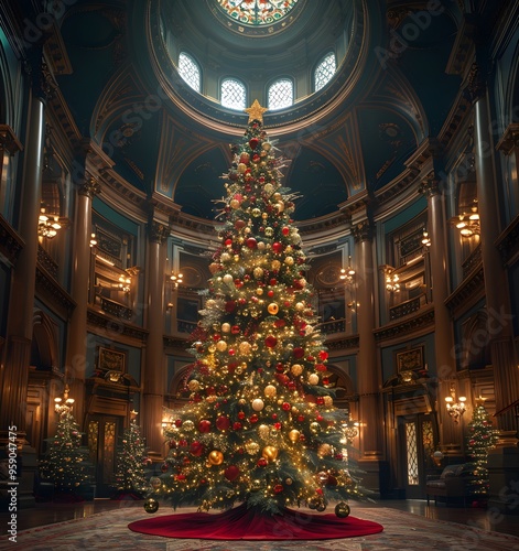 © Gendar SINURO, Obraz premium Christmas tree decorated with many luxurious ornaments