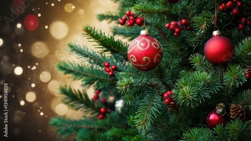 © Muhamad, Naklejka premium Christmas tree decorated with ornaments