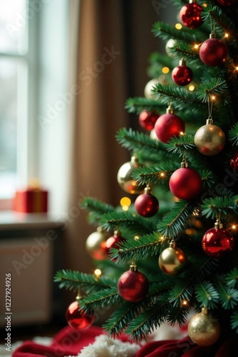 Fototapeta premium Christmas tree decorated with ornaments, ornaments, Christmas tree