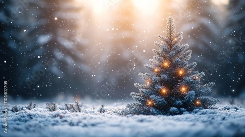Naklejka premium Christmas tree decorated with traditional Christmas decorations, illuminated...