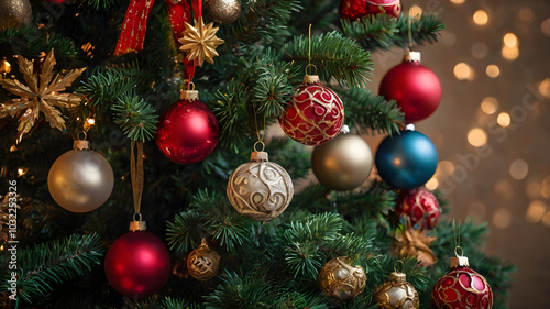 © VitorCosta, Fototapeta premium christmas tree decoration, created with Generative AI technology.