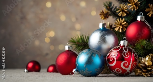 Fototapeta premium christmas tree decorations with copy space.