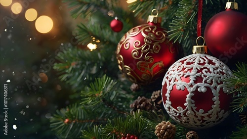 © Naveen, Obraz premium Christmas tree decorations with ornaments.
