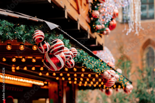 © Masson, Fototapeta premium Christmas tree deocration, baubles on market in Wroclaw, Poland