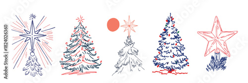 Obraz premium Christmas tree doodle set of hand-drawn festive holiday illustrations