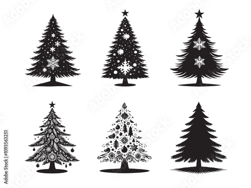 © Ruhel, Fototapeta premium Christmas tree elements vector set silhouette