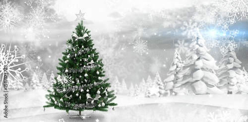 © vectorfusionart, Fototapeta premium Christmas tree in snowy forest