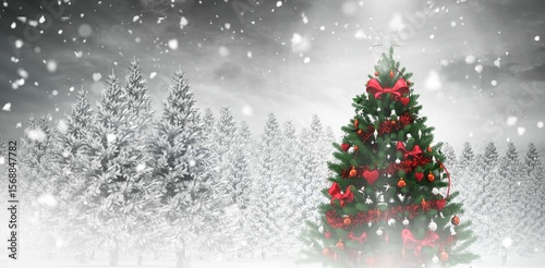 © vectorfusionart, Fototapeta premium Christmas tree in snowy forest