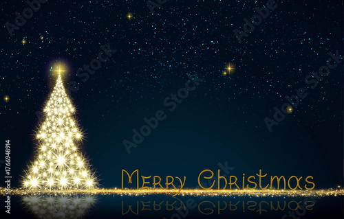 © Swetlana Wall, Naklejka premium Christmas tree isolated on night stars background.
