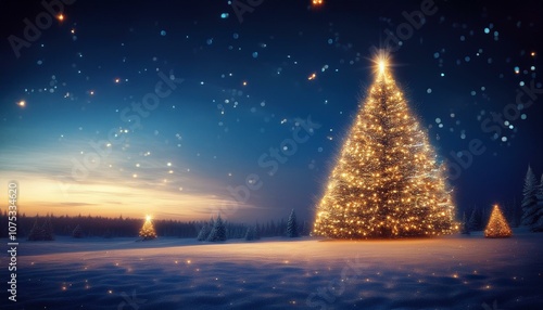 Naklejka premium Christmas tree landscape sparkling at night