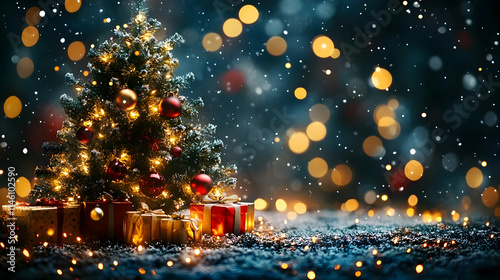 Naklejka premium Christmas Tree Lights Sparkle with Festive Gifts