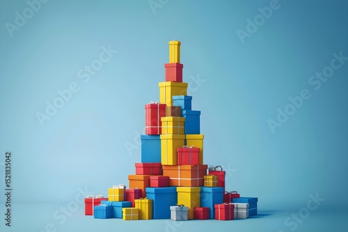 Obraz premium Christmas tree made from colorful gift boxes with a star on top. Holiday...