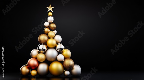 Fototapeta premium Christmas tree made of many different colored balls. The tree is tall and has a star on top