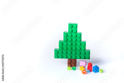 © Tatsiana, Fototapeta premium Christmas tree made of plastic bricks