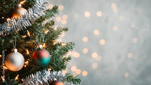 © Phichaphat, Obraz premium Christmas Tree Ornaments & Lights Blurred Background