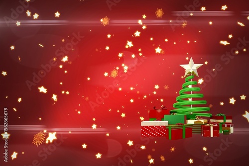 © vectorfusionart, Naklejka premium Christmas tree shape on stars