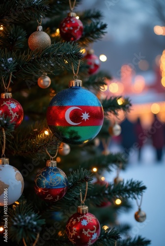 © Sadiq, Fototapeta premium Christmas tree toy decorated with Azerbaijan flag