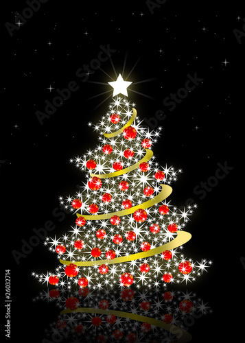 © puckillustrations, Obraz premium Christmas tree with black background
