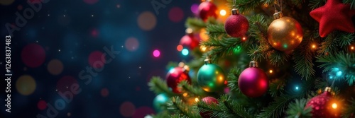 Fototapeta premium Christmas tree with colorful lights and ornaments, festive, lights
