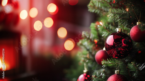 © Cdric, Obraz premium Christmas Tree with Decorations – Place for Text