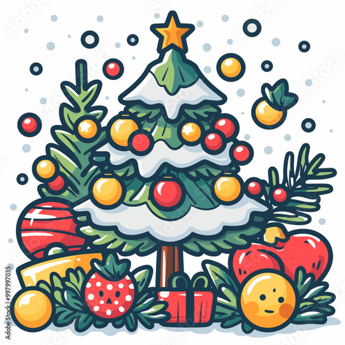 Obraz premium Christmas tree with gift boxes. Merry Christmas and Happy New Year greeting...