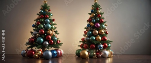 Fototapeta premium Christmas tree with multiple levels of shiny sphere decorations, layered light, sparkling accents, tiered festive