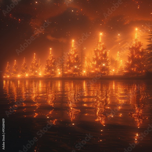 © kiki__, Naklejka premium Christmas Trees Glowing in the Night